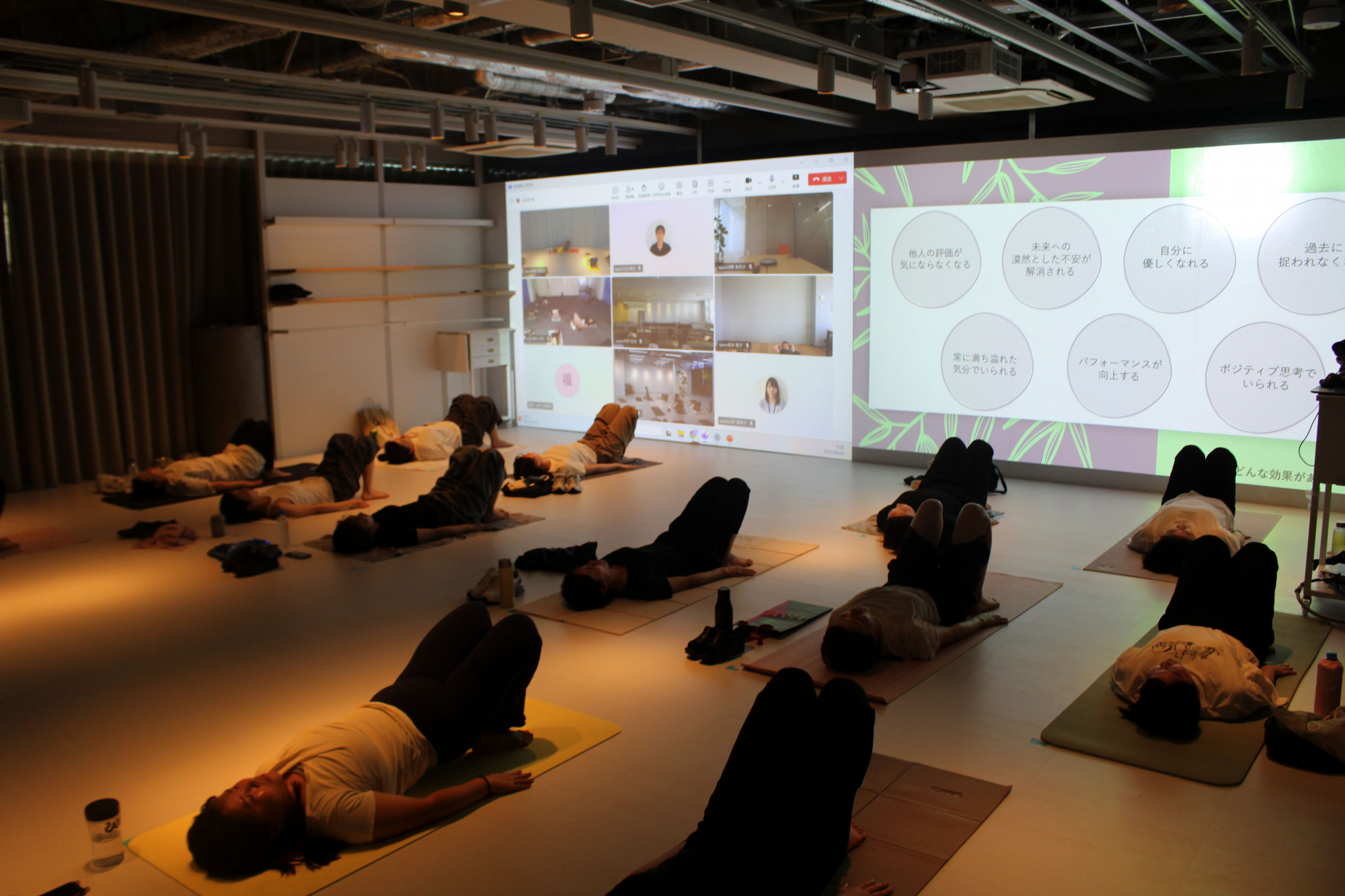 いずれも呼吸を整えながら軽くストレッチし、会場はリラックスした雰囲気に包まれました。
