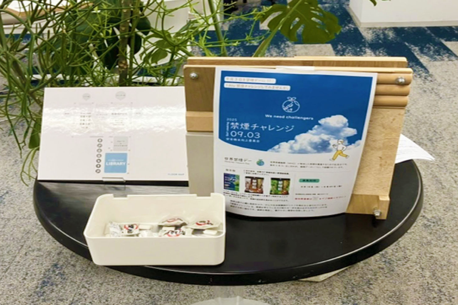各地区の本部ごとに行なった「禁煙チャレンジ」では、禁煙飴やサポートグッズを手に前向きに取り組む姿が見られました。東京本部においては、終了後のアンケートで参加者の約7割が禁煙を達成し、「これをきっかけに禁煙できました!」という声も寄せられました。