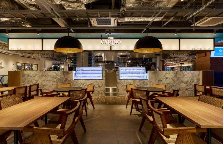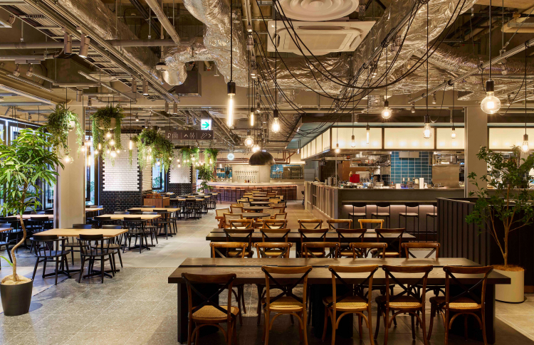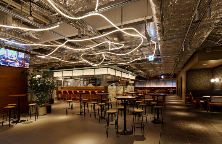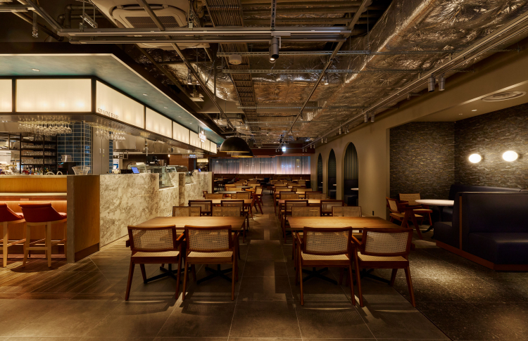 さらに、施設ロゴやホールスタッフのユニフォームコーディネートなど、空間体験を支える要素も含めて提案。各テナントの個性を尊重しながらも、百貨店としての品格と統一感を備えた、大人のためのフードホール空間を実現している。