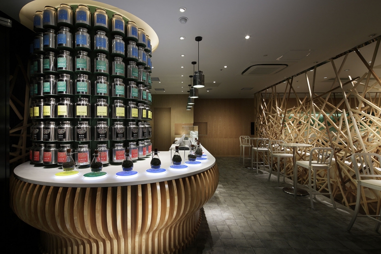 台湾で人気の中国茶の老舗「喫茶趣」が日本に上陸。ホンモノの中国茶を気軽に味わえるティーサロン「cha FOR TEA」として名古屋にオープンしました。茶葉が沈殿していく模様をイメージした多種無垢材の一本一本を丁寧に何層にも組み上げた繊細な木格子と、茶花柄のレリーフを施したボリューム感のあるグリーングラデーションの壁面が「中国の茶芸文化」と「日本の茶室」の融合を表現し、これまでにないファッショナブルで斬新な茶室をつくり上げています。