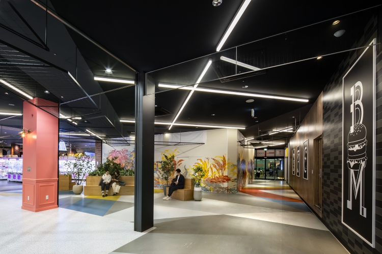 名古屋駅の南に広がる大規模再開発エリア「ささしまライブ24」にて、2005年から開業している複合商業施設「マーケットスクエアささしま」のリニューアル案件です。当社はコンセプトの企画立案から関わり、映画館やライブハウス、大学などの若い世代が多く利用する施設が集合するこのエリアで、本施設がアート・アミューズメント・カルチャーが交わる新たな集いの場となるよう取り組みました。多様な店舗で構成される本施設に商業施設としての一体感を加えるため、内装やサインの計画の他、本施設に出店するテナントのデザインディレクションも一貫して行うことでテーマ性を持った施設へと生まれ変わりました。