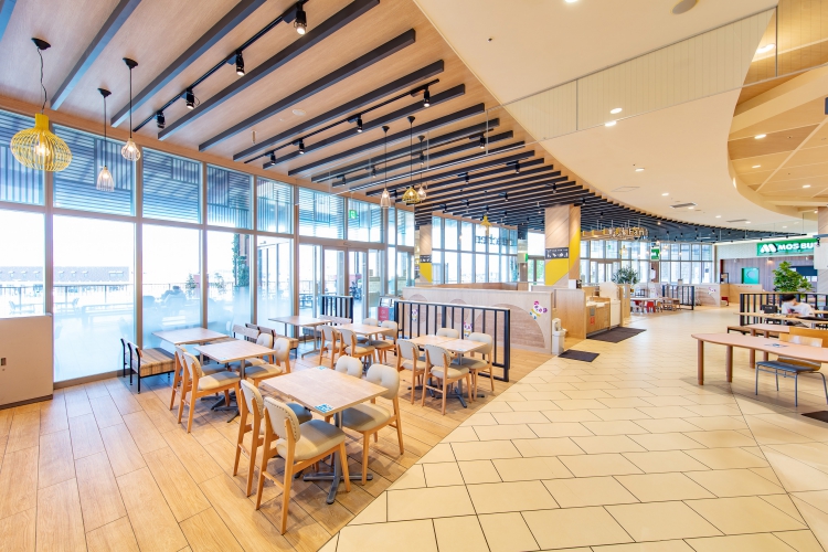 また、新型コロナウイルスへの対策として、フードコートのテラス席の増席はもちろん、ビッグテーブル席やリクライニング席、ソファ席等を充実させ、屋外だけでも様々なバリエーションを持たせることで積極的に屋外で過ごしたくなる客席構成としました。また、新設のキッズスペースでは付着したウイルスを不活性化させる抗ウイルス剤を採用しました。様々な感染防止対策をすることで、安心安全や密回避に寄与する計画としました。