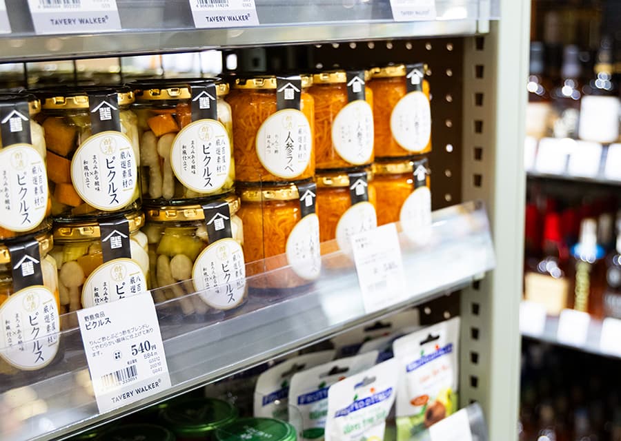 新村:「より具体的にどんなお店にするかを考えるにあたり、序盤の段階で島田さんたちと京都・大阪・神戸に視察に行きました。二日間にわたっていくつもの食品店を巡り、売り場づくりや商品ラインナップなどを調査。プロモーションがキーになると思われたので、食品に限らず雑貨屋にも訪ね、ギフト商品として参考になりそうなパッケージデザインをいくつも収集しました」