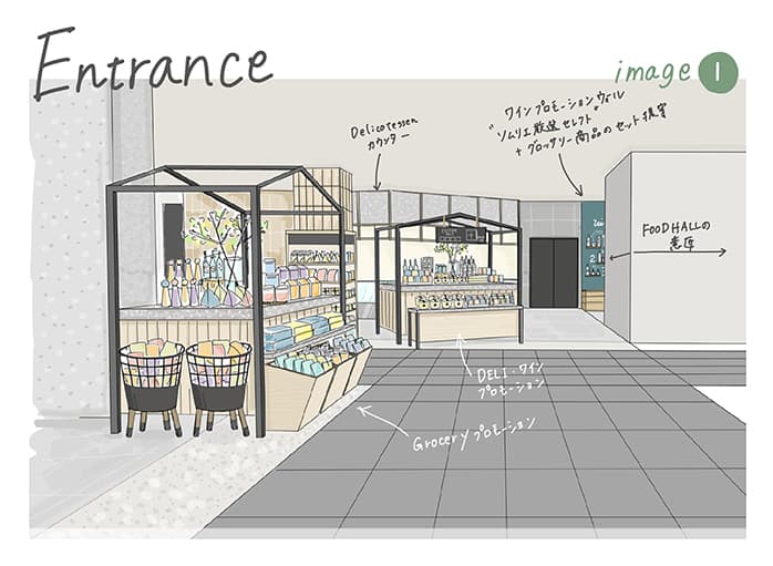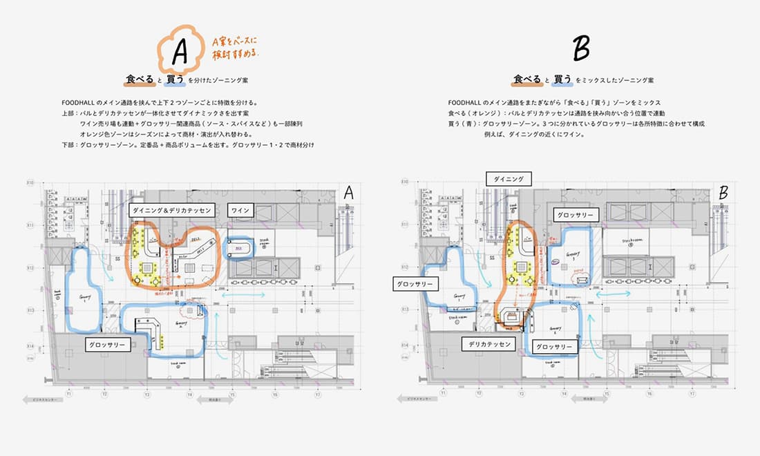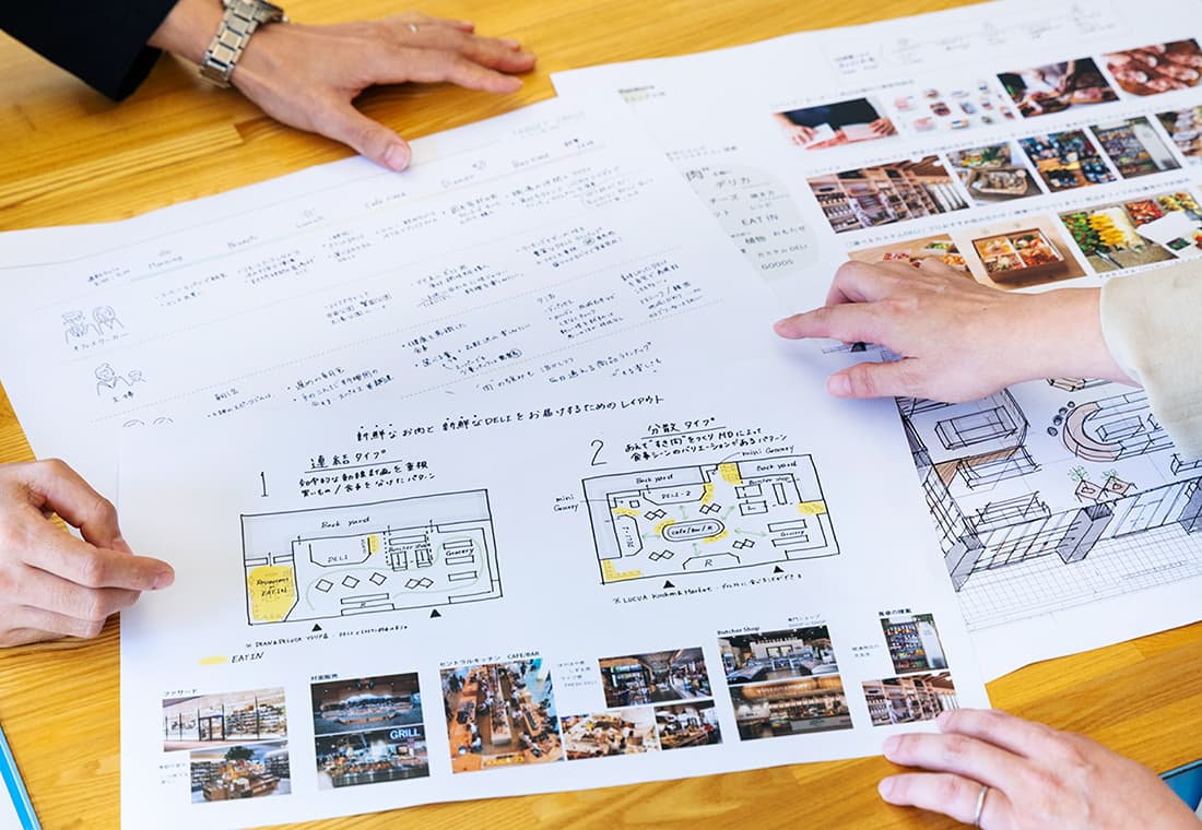 布川:「社内で企画を通していく島田さんをサポートするため、私たちも大急ぎで提案資料を準備しました。まず、コンセプトは“FOOD is LIFE! (フーディーズライフ)”。食通(フーディ)たちの集まる店にしたい、こだわりの食材や健康にいい食べ物をあれこれ楽しく買い求めるライフスタイルをお届けしたいという想いを込めました」